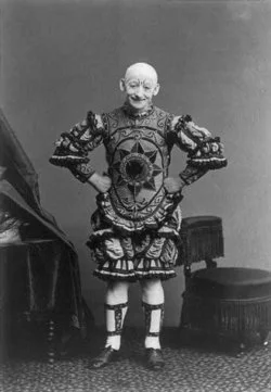 He was in and out of asylums, said to be recovering and then slipping back again, until 1877, when he died at the age of 52. The heyday of American pantomime effectively died with him. Knockabout slapstick of course survived and would be a staple of vaudeville and Hollywood in the next century. But between the ceaseless performing of Fox and the Ravels, not to mention many other imitators, the audience had seen enough of the storybook pantomime play and moved on to new entertainments. You can catch what may be some faint echoes of Humpty for a while in the 20th century – maybe in Lon Chaney’s masochistic clown in He Who Gets Slapped, arguably the most grotesque and disturbing circus movie ever made, and maybe in Koko the Clown from Max Fleischer’s extraordinary Out of the Inkwell animations. But Fox and Humpty had been long forgotten when Senelick’s 1988 biography The Age and Stage of George L. Fox stirred a revival of interest. In 2004 the clown Bill Irwin, whose performing has always been informed by history, debuted Fox: A Rumination, recreating Humpty in full regalia.