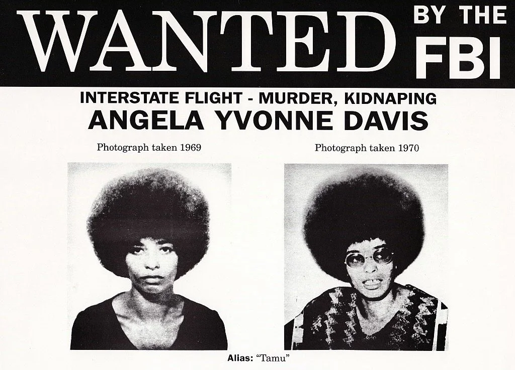 In August of 1970 a black teen named Jonathan Jackson took over a Marin County courtroom and demanded the release of his older brother, Panther member George Jackson, from nearby Soledad prison. He took the judge, the district attorney and three jurors hostage. In the attempted getaway, Jackson, the judge and one other person were shot and killed. When police discovered that Davis, who knew George Jackson, was the registered owner of Jonathan’s weapon, she was charged as an accomplice to murder, a capital crime in California. She fled the state, which put her on the FBI’s most wanted list. A beautiful twenty-six-year-old with a huge and magnificent Afro, she became a global pop star of the revolution a la Che Guevara. When the FBI arrested her she’d spent a few days walking openly in Times Square, unrecognized because she’d slicked down the Afro and dressed like an office worker.
